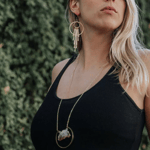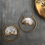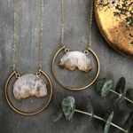 Raw Citrine Slice Pendant | Brass Circle Hoop | Gold Plated Chain | Geometric Long Boho Necklace | Ideal Gift